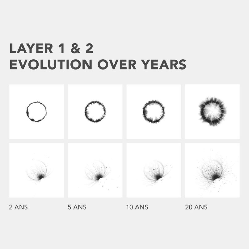 In collaboration with Parkinsons Québec, we created a generative art machine. This program uses sourced data from vector points plotted on a tablet and a pressure-sensitive pencil. People with Parkinson’s disease have drawn a circle on the tablet without taking their medication, leaving an imperfect circular line. This data was converted by algorithms to generate “degenerative” works of art that evolved over time just as the disease affects these people.